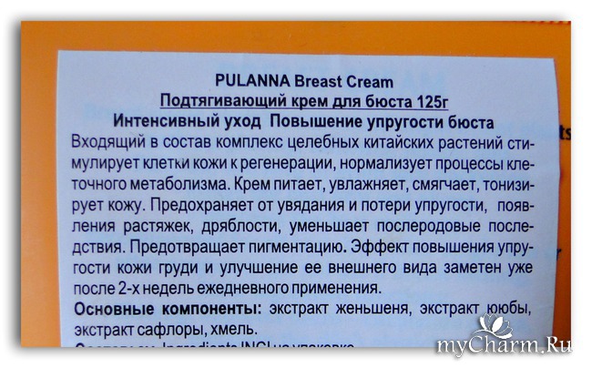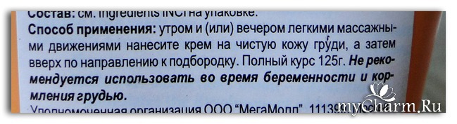 Результат был бы гораздо лучше, если во время применения крема делать какие-нибудь упражнения, направленные на повышение упругости груди. Но так как лень родилась раньше меня, то ничего про такой тандем сказать не могу. Но предполагаю, что эффективность была бы гораздо выше.