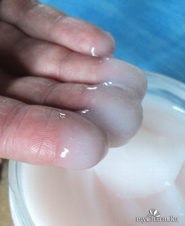 Внешне это вот такая розовая однородная субстанция. На ощупь, если честно, немного необычно. Возможно, любой бальзам или маска из тюбика такая же по консистенции, но необычно макать в эту массу пальцы, чтобы взять состав на волосы. Неприятно немного. И получается, не гигиенично. Состав ведь будет быстрее портится, если в него попадет влага и кожные жиры. Опять я недовольна именно упаковкой.Состав придется использовать быстро, чтобы исключить развитие бактерий.