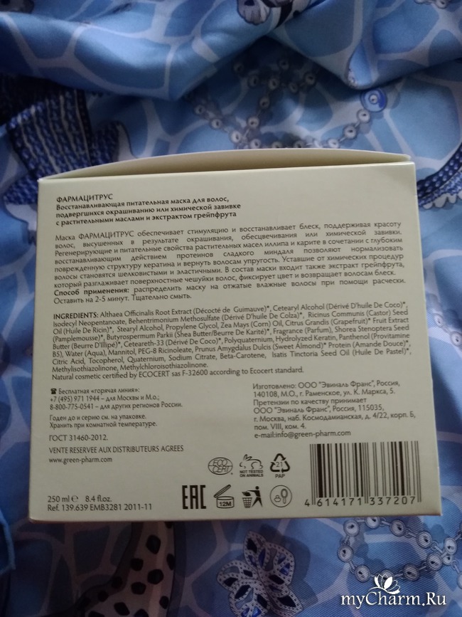 Сегодня у меня на тестировании маска «Фармацитрус» от уже известной нам компании «Грин Фарма», которая делает органически «правильную» полезную косметику. Цель и призвание этой маски – восстанавливать и питать волосы, подвергшиеся окрашиванию или химической завивке.