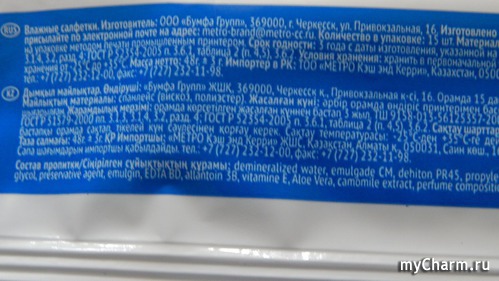 Салфетки российского производства, изготовлены в городе Черкесске по заказу ООО «МЕТРО Кэш энд Керри». Кстати, эти салфетки и были приобретены в торговом центре «Метро».