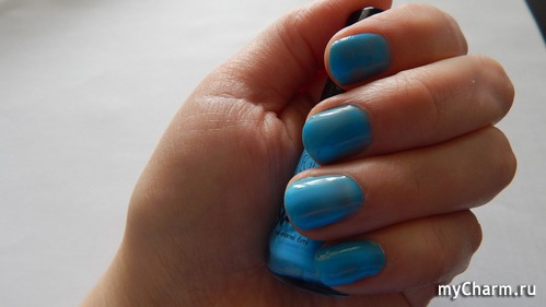 Лак Stax nail enamel голубого цвета очень яркий, даже можно сказать, кислотный, требует очень большого количества времени для покраски ногтей, не стойкий, но цене соответствует.Рекомендую этот лак для ногтей любительницам яркого сочного маникюра, но терпеливых в отношении проведения долгих и частых процедур маникюра.