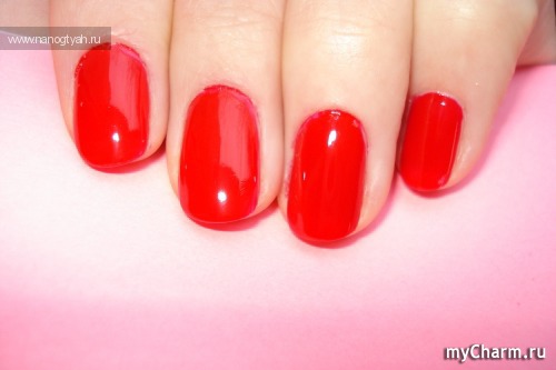 При покрытии ногтей вторым слоем лака цвет получается очень яркий, ногти глянцевые и плотные, будто покрыты каким-то резиновым веществом.