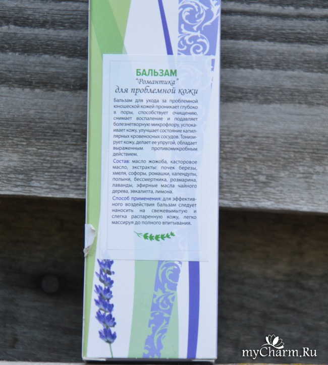 Когда выбирала средства бренда «Душистый мир» на тестирование, мне захотелось взять что-то, что помогло бы моей коже в проблемные моменты. Свой выбор я остановила на бальзаме «Романтика» для проблемной кожи. Хочу отметить, что, прежде всего, этот продукт рассчитан для юношеского возраста. Но мне понравилось описание, что бальзам способен проникнуть глубоко в кожу и снять воспаление, подавить болезнетворную флору, то есть устранить одну из основных причин возникновения прыщей.