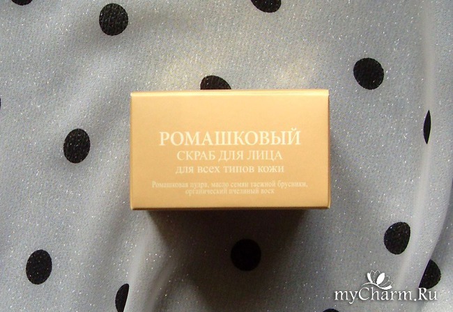 Петь оды этому скрабу, который, кстати, подходит любому типу кожи, в том числе сухому и чувствительному как у меня, я начну с описания аромата. Это действительно ромашка, естественная и первозданная. Именно так она пахнет на поле или когда открываешь аптечную коробочку с высушенными цветками. Мне этот чарующий аромат сразу же поднимает настроение.