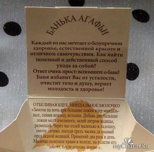 Почему состав именно такой, спросите вы? Потому что это древний рецепт Бабушки Агафьи для сохранения молодости и красоты кожи.