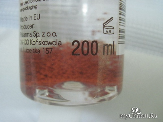 Во флаконе 200 мл средства. После открытия пользоваться можно только 6 месяцев. Если у вас в ходу только одна мицеллярная вода, вы управитесь еще раньше. Просто советую заранее никакую косметику не открывать «чтобы понюхать».