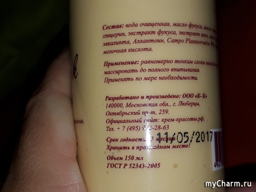 Благодаря своему натуральному составу средство имеет срок годности всего 3 месяца с даты производства, которая указана тут же. Можно быть уверенной в том, что средство свежее, ведь Крем Красоты изготавливает продукт непосредственно перед продажей, с заботой о потребителе.