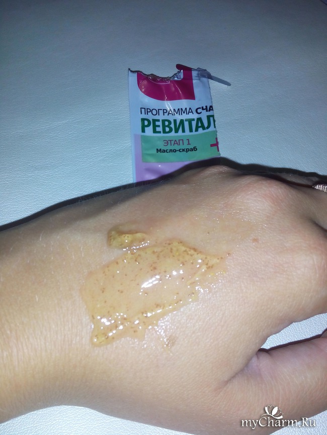Как известно, чтобы косметическое средство лучше и быстрее подействовало, необходимо наносить на чистую кожу. Масло-скраб справляется с этим на отлично. Консистенция густая, не стекает по коже, плотная, вязкая. В ее составе есть мелкие частички - пудра виноградной косточки и корица, которые мягко и бережно очищают и отшелушивают кожу.