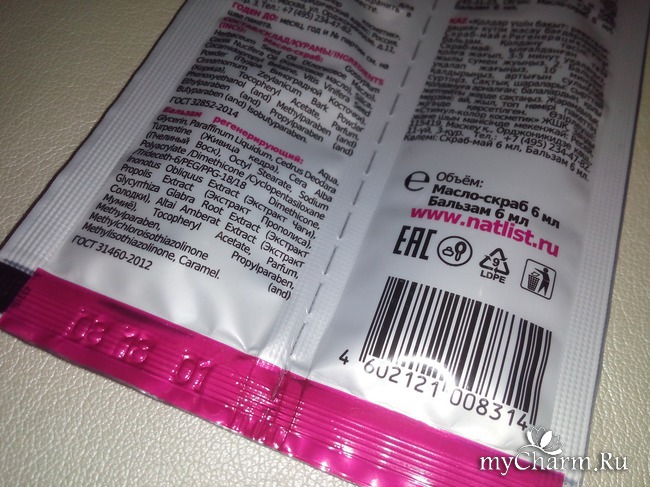 Одного пакетика программы, а это по 6 мл каждого средства, мне хватает на 2-4 процедуры. Причем масло-скраб я расходую быстрее, а бальзамом пользуюсь потом отдельно.