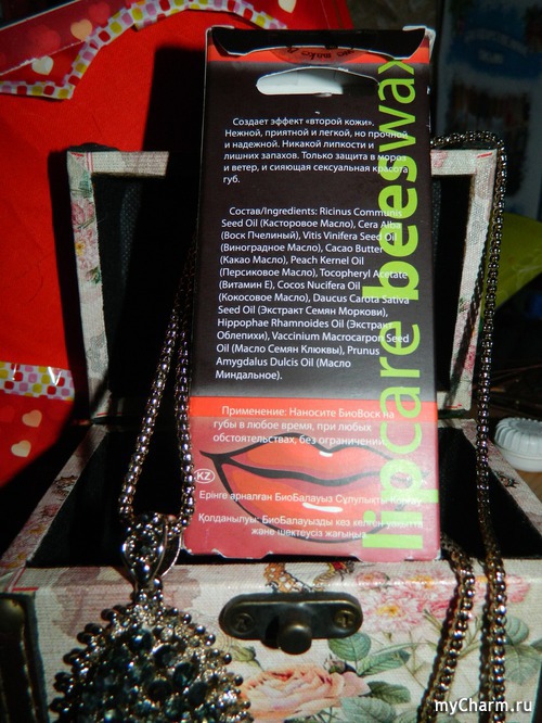 Защита. Биовоск защищает губы в любой ситуации. Скажем, в жарком и душном офисном кабинете. А также на улице – будь там мороз, ветер, метель, дождь со снегом или жгучее солнце. Независимо от погодных условий, воск остаётся на губах и работает – защищает губы. С ним можно не бояться обветриваний, сухости и шелушения! Он выдерживает морозы до – 40 градусов (повезло нам в этом году!), а также ветер со снегом и дождём – не смывается, не стирается и никуда не исчезает. Это даже не плюс, а огромный плюсище!