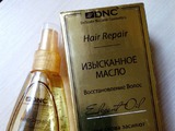 Изысканное масло заключено в прозрачный пластиковый флакон, наделенный удобным дозатором. Поверх дозатора есть защитная крышка. Дизайн продукта просто потрясающий, так и хочется назвать масло не изысканным, а золотым! К флакону приложена картонная коробка, она такая же яркая и привлекательная. Информация о составе, способе применения, эффективности и других важных аспектах имеется.Консистенция масляная, золотисто-желтая. Аромат не могу распознать, смесь масел, скорее нейтральный, но есть какая-то не совсем приятная нотка, но после помывки она исчезает. Расходуется масло экономно, но опять же я не наношу масло на корни волос, поскольку в этом не нуждаюсь. Моя задача – максимально напитать окрашенные локоны, а уход за кожей головы я периодически осуществляю посредством дрожжей или черного угля от DNC.