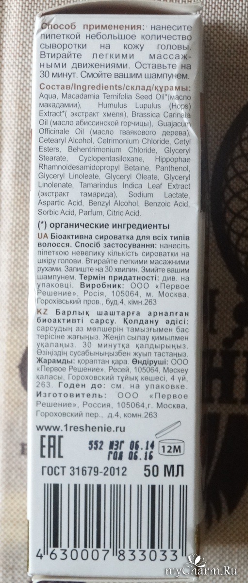 Все эти компоненты обеспечивают чудесное воздействие сыворотки на кожу головы и дарят отличный эффект!