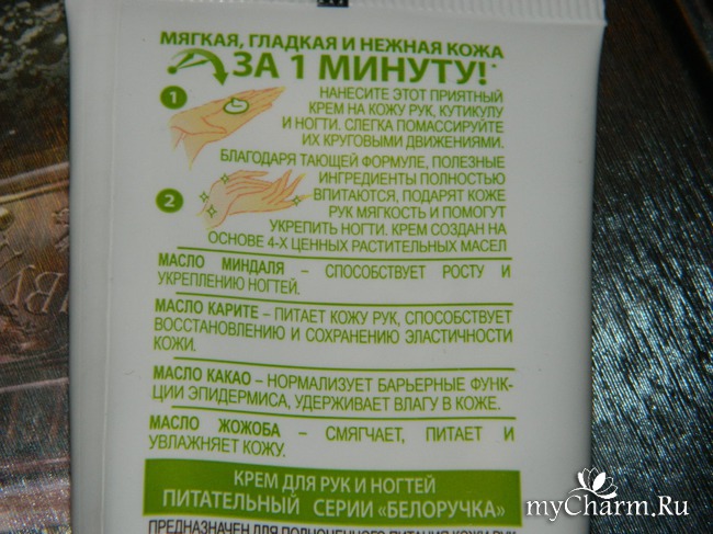 Но если серьёзно, меня привлекло обещание сделать мои руки нежными, мягкими и гладкими всего за одну минуту, плюс укрепить ногти. Звучит заманчиво, не находите?