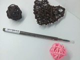 Карандаш двусторонний. С одной стороны выкручивается и закручивается обратно стержень. Он тонкий (диаметр всего 1,5мм), отлично имитирует естественную тонкость волосков и хорошо прокрашивает.