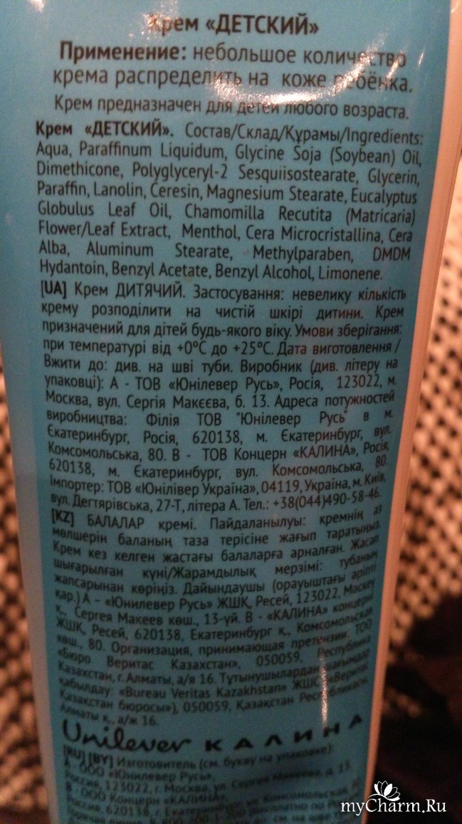 Детский крем от концерна «Калина» (крем с лисичкой, как мы его называли) я помню с детства – пользовалась ли им моя мама при уходе за мной, не припоминаю, но за моей сестрой (ей сейчас 22) – это точно. Бело-голубой тюбик с красной крышечкой и с изображением оранжевого лисенка всегда стоял на полочке над пеленальным столиком. Использовался он и под подгузники, и при раздражениях на щечках сестрички. Спустя почти двадцать лет со времени моего детства я открыла его вновь – но уже в качестве помощника для ухода не за нежной детской кожей, а за своей собственной.