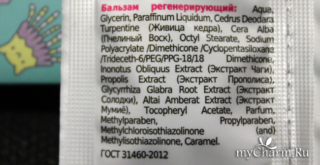 И помимо этих трех волшебных слов в глаза бросается, что активные натуральные ингредиенты в составе - кедровая живица и мумие. А потому предлагаю сразу же в этом убедиться, ознакомившись с информацией на оборотной стороне. К слову, там сразу два состава: