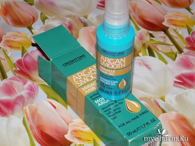 Напомню вам о свойствах арганового масла в косметологии. Это масло на протяжении многих столетий считается чудодейственным. Применяют его, как дополнительный ингредиент, и в рецептах для оздоровления организма, и для красоты тела, кожи, ногтей, волос. Получают масло из ядра (ореха) марокканского арганового дерева. Аргановое масло богато природными антиоксидантами, полезнейшими микроэлементами. Обогащенная маслом арганы линия продуктов Argan Smooth от Creightons глубоко питает и увлажняет волосы от корней до самых кончиков, придавая прическе ухоженный, салонный вид.