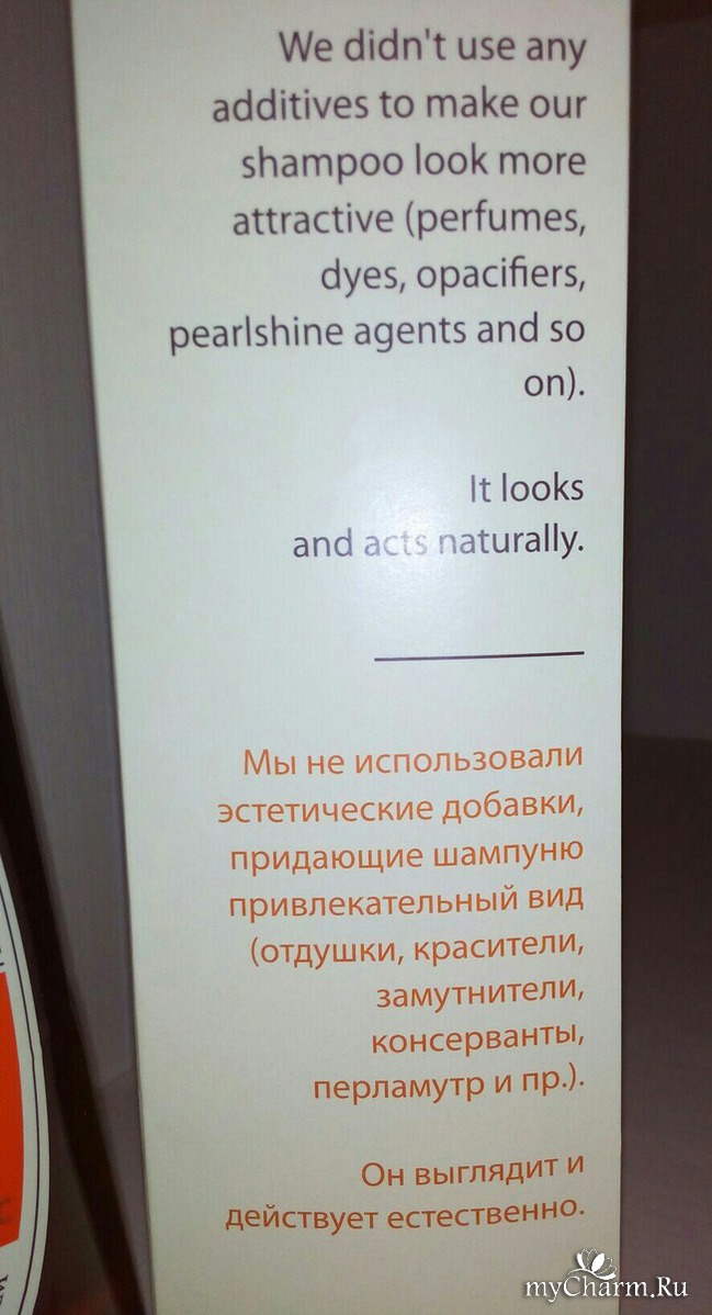 Шампунь продается в картонной коробочке, что не скажешь о большинстве бутылок с шампунями на полках в магазинах. Коробочка со всех сторон исписана информацией о средстве.