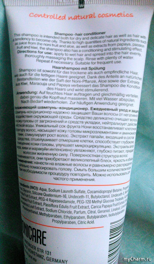 И несмотря на то, что продукция Nonicare заявлена, как натуральная, в составе все же присутствуют SLS и прочие подобные компоненты. Но стоит заметить, что также присутствуют и экстракты различных фруктов (киви, маракуйи, папайи и алоэ барбадосского)