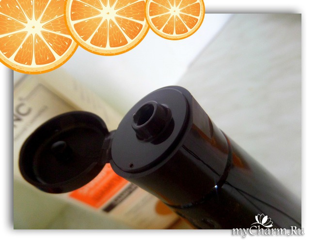 Сам шампунь абсолютно прозрачный и густой, как смола, и с потрясающим апельсиновым ароматом. Мне он не кажется химозным, а даже наоборот, как будто где-то только что разрезали апельсинку, которая пропитала все вокруг своим запахом. Особенно отчетливо это ощущалось при создании пены (об этом ниже).
