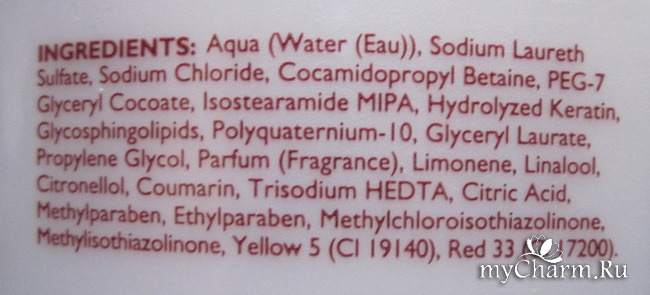 В остальном состав традиционный для масс-маркет шампуней (присутствуют сульфаты, парабены). В общем, смотрите сами.