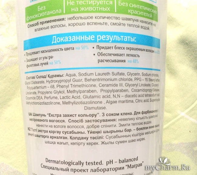 За счет чего может сохраниться цвет? Скорее всего, за счет веществ, которые образуют пленку на поверхности волоса. Это, например, такие как глицерин, силикон. Здесь есть и то, и другое.
