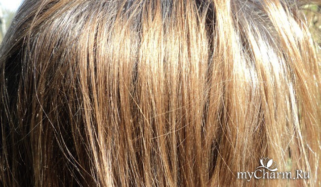 Это мои волосы до окрашивания в пепельный (мой опыт окрашивания вот здесь: https://www.mycharm.ru/kosmetika/obzory/kraska-buty-reshila-stat-tejlor-svift/). Блеск имеется, но и солнышко хорошо светило в тот день)).
