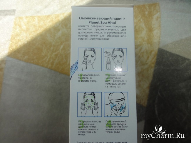 На боковой стороне коробочки даны пояснения в картинках, как провести процедуру пилинга.