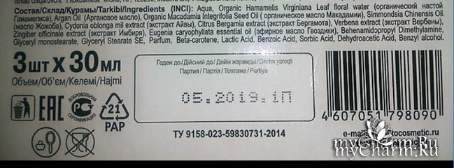 Внутри упаковки находятся три пакетика по 30 мл и вкладыш.