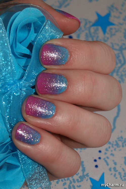 А здесь испортила градиент плохой губкой с Али. Глиттер отлично «спрятал» все недостатки.