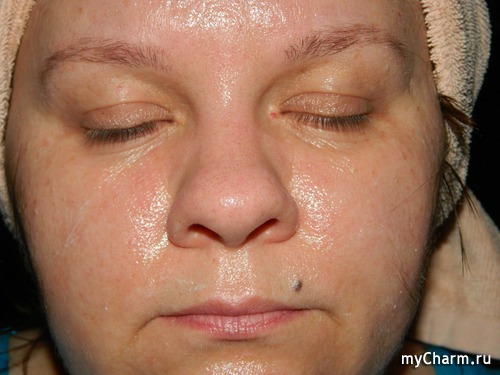 Спустя это время маска практически полностью впитывается, остаётся вот такой жирный блеск.