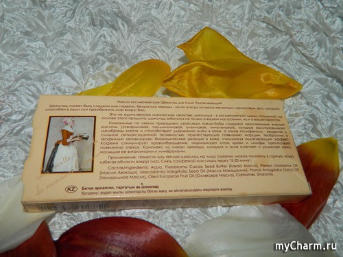 Внешне упаковка, действительно, похожа на ту, в которой можно найти плитку шоколада. Вне всяких сомнений, такая коробочка (а желательно две) станет отличным презентом для дамы, следящей за своей внешностью.