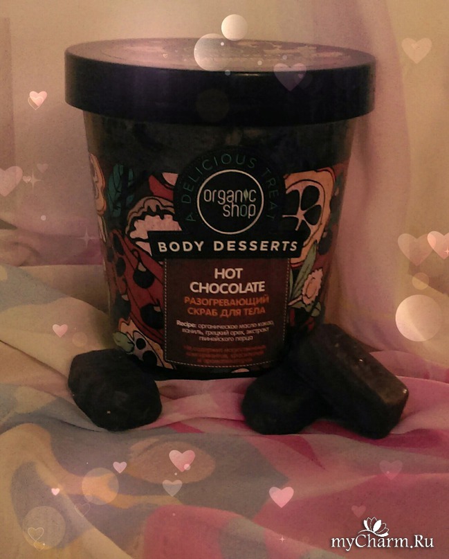 Как же нам, девочкам, хочется иногда расслабиться и побаловать себя чем-нибудь вкусненьким после тяжелого дня. А что получится, если совместить горький, с нотками ванили, горячий шоколад и уход за телом? Получится замечательный скраб от Organic shop Hot Chocolate.