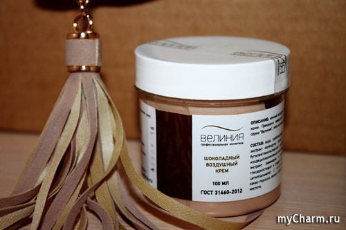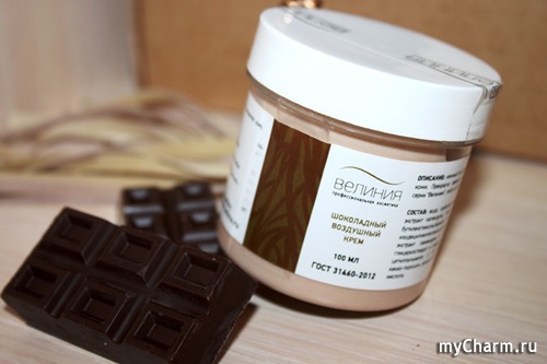 Думаю, Велиния не просто понимает подобную страсть женских сердец, но и умеет угодить. Иначе просто не могу объяснить появление чудесного средства в её косметичкой коллекции – Шоколадного воздушного крема. Одно только название уже интригует и соблазняет. Так что полученная заветная баночка с любопытным продуктом не могла долго ждать своего часа и была быстро открыта и продегустирована.