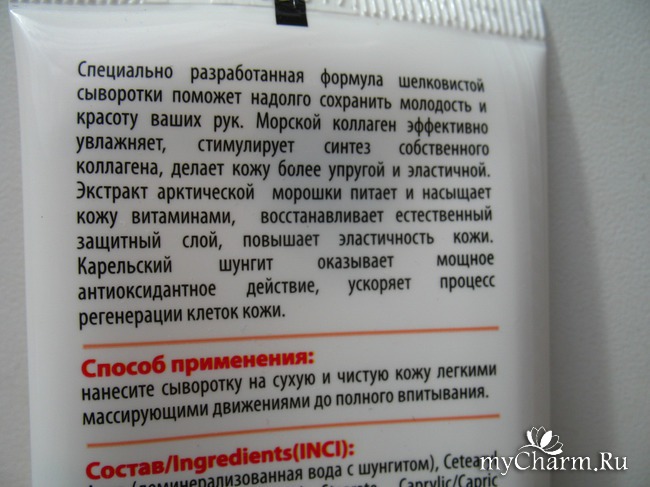 Вот такой богатый состав у нашей сыворотки для кожи рук. Справедливости ради замечу, что в составе все же присутствуют два парабена, но зная теперь удивительные свойства шунгита хотелось бы верить, что вредное воздействие оных будет нейтрализовано)))