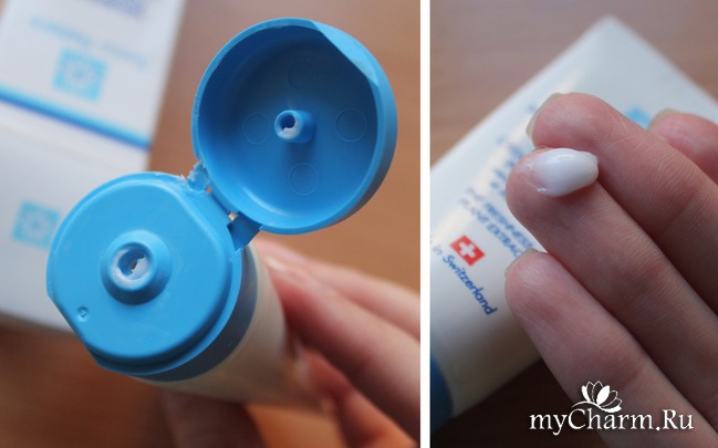 Ничего лишнего - лишь белый тюбик с глянцевым покрытием, голубая крышечка и текст. Минимализм ;)
