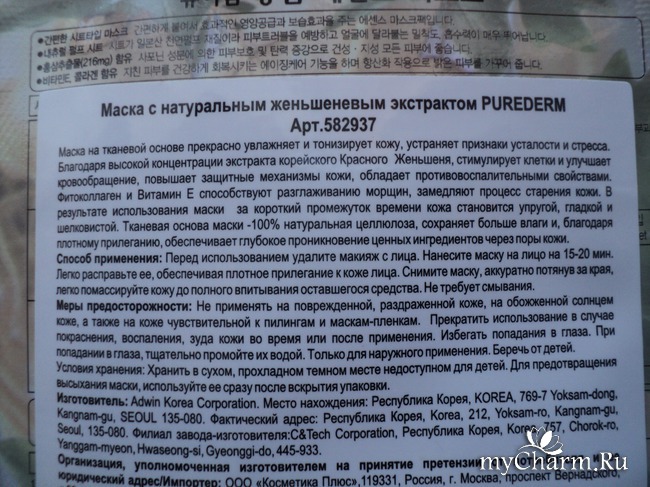 Каковы особенности тканевой маски?! Производитель заявляет, что действие продукта направлено на увлажнение, тонизирование уставшей и вялой кожи, устранение признаков стресса. Такой эффект обеспечивается содержанием в составе маски:
