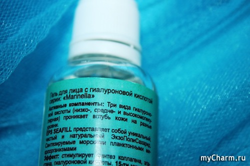 Консистенция средства это прозрачная жидкость с заметной вязкостью. Без аромата. Кстати, если обратить внимание на состав, то это вполне оправдано. Ингредиентов мало и ничего лишнего. Основные действующие лица: три вида гиалуроновой кислоты разных молекулярных уровней (это способствует проникновению средства в глубокие слои кожи) + EPS SEAFILL – «натуральный экзополисахарид, синтезируемый планктонными микроорганизмами».