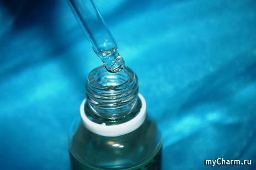 Внешний вид продукта достаточно прост. Возможно он затерялся бы среди ассортимента косметики на полке магазина, но все же он вполне симпатичный. Стеклянный вытянутый силуэт облачен в бирюзовую этикетку по кругу. Завершает это убранство белый колпачок с мягкой резиновой пипеткой. Удобство такого дозатора понимаешь уже с первого применения. Точность дозировки позволяет буквально до последней капли использовать состав.