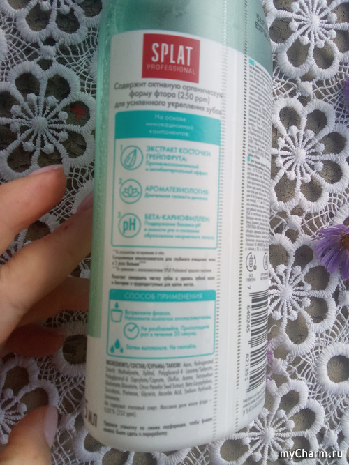 Неприятный запах появляется, как правило, из-за того, что в полости рта обосновались болезнетворные бактерии, вызывающие процесс воспаления. Чтобы его предотвратить, в состав средства включены такие ингредиенты, как бета-кариофиллен и экстракт косточки грейпфрута. Ну а шансов микроорганизмам, приводящих к кариесу, не оставит ксилит.