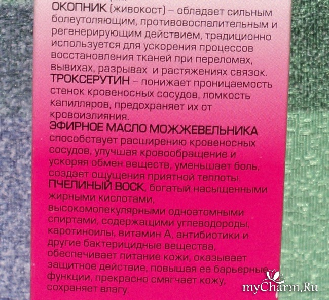 Если про шунгит я уже более или менее рассказала, то про окопник, можжевельник и троксерутин лучше написано вот здесь, на упаковке крема-бальзама: