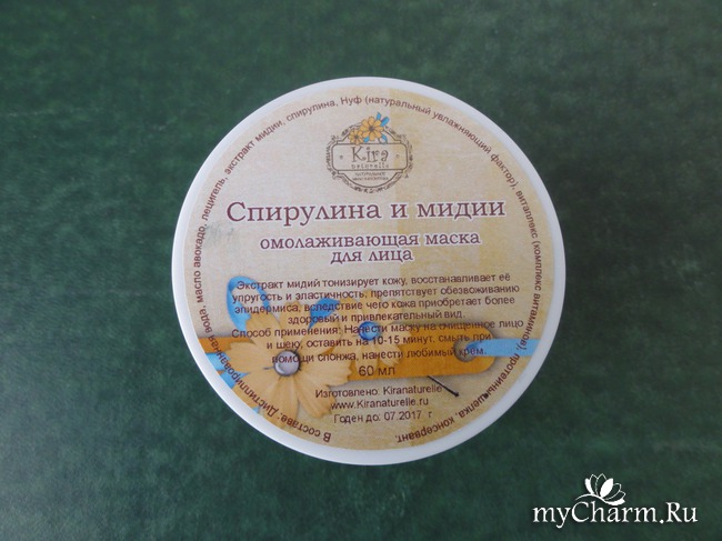 Маска для лица омолаживающая «Спирулина и мидии» от Kiranaturelle обладает уникальными омолаживающими свойствами.