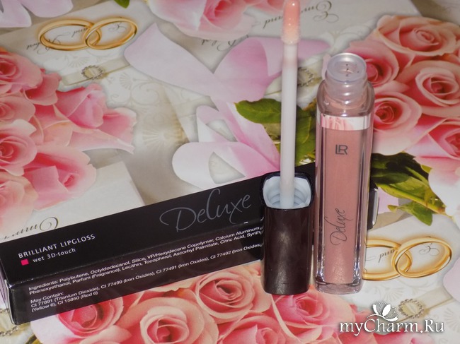 Объем средства – 4 мл. Стоимость – 879 рублей. Почитать о компании-производителе и ее производстве, а также заказать эту косметику можно вот здесь - lrworld.ru. Блеск, как и вся декоративная косметика LR Deluxe находится в очень стильном флаконе с удобной кисточкой аппликатором, которой наносить средство проще простого. Берется гель весьма дозированно из флакончика. А сам флакон заключен в черную узкую коробочку, на которой есть вся информация о составе средства, стране-производителе, сроке годности.