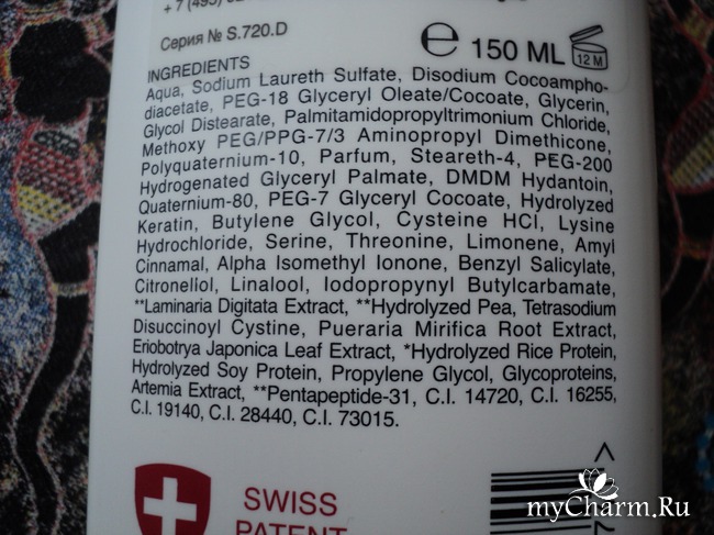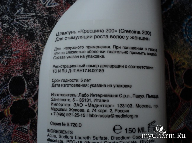 Если верить производителю, шампунь Crescina 200 создан на основе активных компонентов ампульных препаратов. А в их комплекс включены аминокислоты, в частности лизин и цистеин. Как гласит наука, это главные помощники нашего организма, отвечающие за выработку кератина в волосяных луковицах, а, значит, способствующие прорастанию луковиц и их дальнейшему росту. Также действие шампуня направлено на бережное очищение, предотвращение перхоти, придание тонким волосам объема без утяжеления, упругости и увлажненности. В общем, отличные характеристики, это как раз то, что требуется моей шевелюре. Идем дальше!