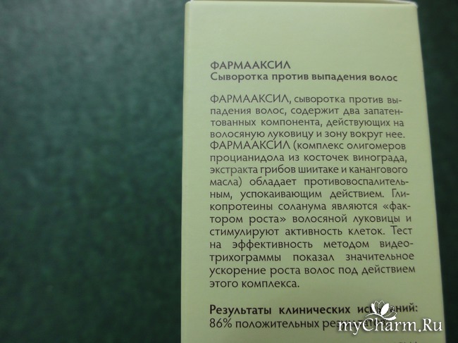 Конечно, если есть серьезные проблемы с выпадением волос, нужно действовать комплексно, используя еще ряд мер, но и сама по себе сыворотка действует прекрасно, активизирует рост волос, стимулирует волосяные фолликулы и предупреждает выпадение волос. Поэтому сыворотку Фармааксил могу смело порекомендовать к применению всем.