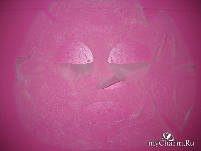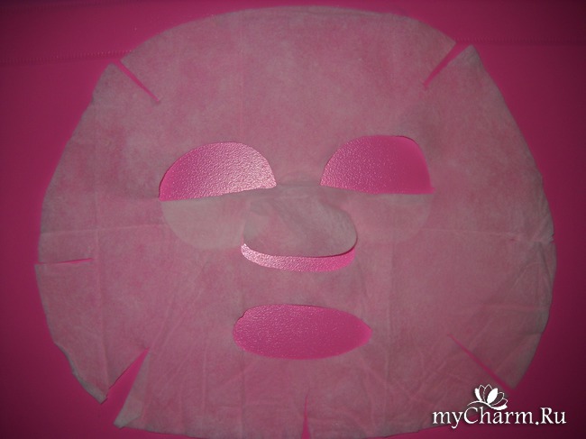 Внутри упаковки я обнаружила очень мокрую и аккуратно свернутую масочку. Сама маска нанесена на натуральную целлюлозную основу, обеспечивающую хорошее прилегание к лицу и не вызывающую раздражения кожи. Для меня это очень важно, так как моя кожа весьма чувствительна и капризна.