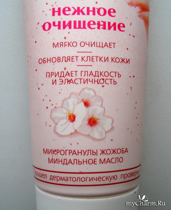 Обещает мне это средство нежное и мягкое очищение, обновление клеток кожи, а так же придание ей гладкости и эластичности. Все эти прелести будут достигаться с помощью микрогранул жожоба и миндального масла.