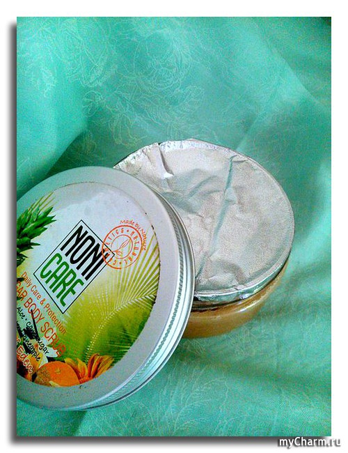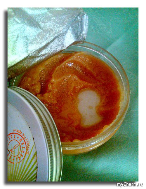 И вот, наконец-то, я добралась до этой баночки. Когда я убрала фольгу, возникло ощущение, что на меня высыпали целый ушат экзотических фруктов, их аромат просто окутал меня, и это еще до того, как я начала пользоваться скрабом!