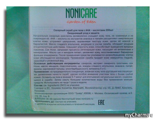 Получить необычайные ощущения в совокупности с ароматерапией, можно и дома, вместе с Сахарным скрабом от Nonicare.