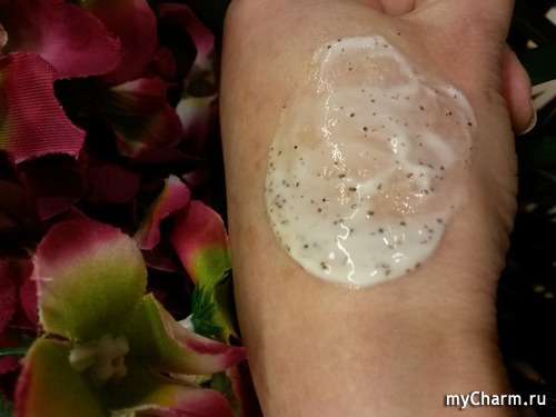 Скраб слегка стягивает, но это только первое ощущение, он как бы подтягивает кожу и предупреждает, что все! Работа сделана, принимайте!